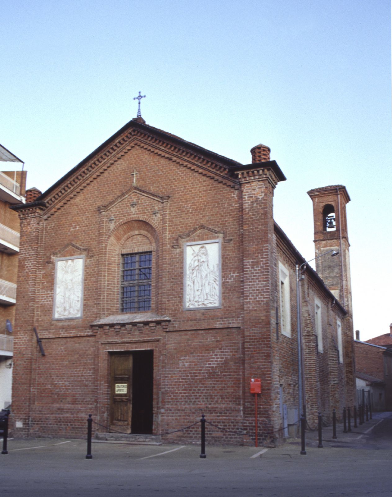 Confrontando la pianta catastale del 1762 e quella del 1809, sembra quasi di poter affermare che l'oratorio di San Sebastiano abbia subìto alla fine del secolo XVIII un arretramento della facciata. In corrispondenza della piazza odierna va individuata la preesistenza di una delle tre porte di accesso delle mura di epoca precomunale; le altre erano una presso l'attuale congiunzione tra via Boidi e via Roma, l'altra presso in corrispondenza del Cannon D'Oro, in piazza Vittorio Emanuele II.
