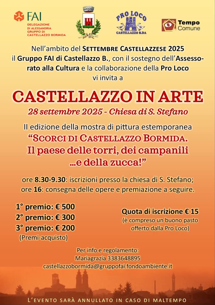 Mostra di pittura estemporanea con tema: "Scorci di Castellazzo Bormida. Il paese delle torri, dei campanili ...e della zucca"